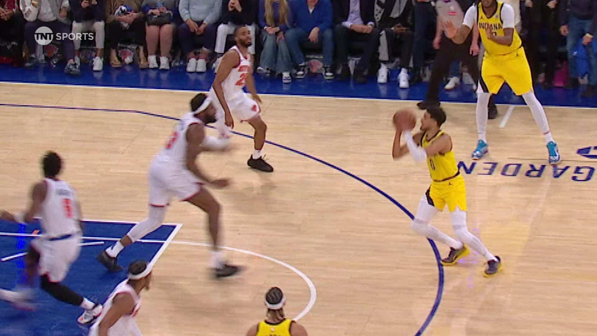 哈利伯顿变向过掉了大桥,但前有米罗封闭,后有大桥长臂干涉,哈利险些出手邪恶,但这也让他趁势拉回到三分线外,开始掷中了最炸裂的一球。